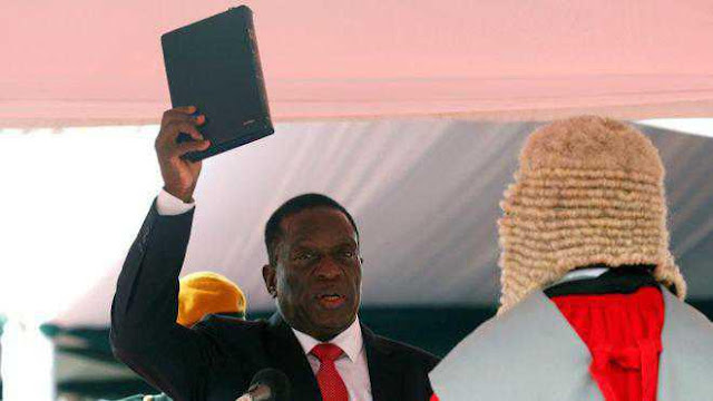 Emersan Munangaagwaa guyyaa har’aa November 24, 2017 Magaalaa gudditti Zimbaabwee Haraaree keessatti, Kitaaba itti amanu qabatee biyya isaatiif kakatee aangoo fudhate.