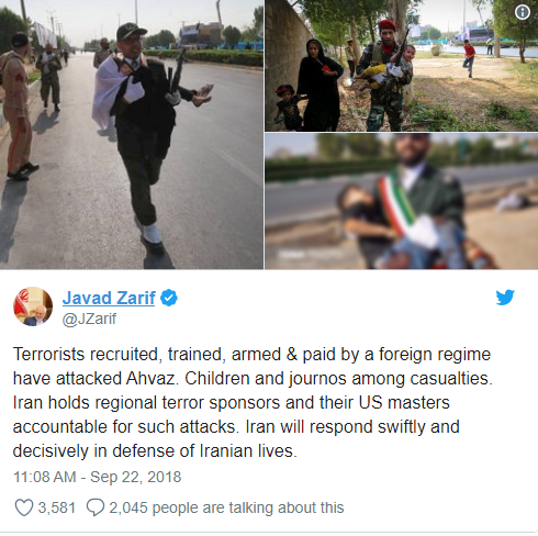Haleellaa kana qabatamaan eennu akka raawwate hanga ammaattii wanti ibsame hin jiru. Haa ta’u malee Ministeerri haajaa alaa Iiran Javaad Zariif gama Tiwitterii isaatiin “shororkeessitoonni biyyoota alaatiin qaxaramanii, leenjifamanii hidhachiifaman Avaazitti haleellaa raawwatanii jiru. Ameerikaa fi ergamtoonni isii naannichatti shororkeessummaa raawwattan itti gaafatamummaa fudhachuu qabu”jedhe. Magaalaan Ahvaaz kibba lixa Iiraanitti kan argamtu yoo taatu, kanaan dura ummanni magaalattii yeroo heddu mootummaa irratti mormii kaasaa ture.