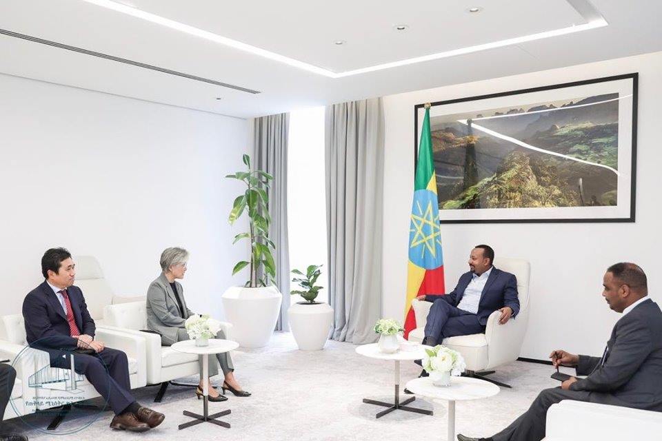 Haaluma wal fakkaatuun, Dr.Abiy Ahmad Ministeera Haajaa Alaa Kooriyaa Kibbaa Kaang Yuung Hwaa waliin mari’ate. Qabxiileen marii isaanii hariiroo fi tumsa biyyoota lamaanii cimsuu irratti kan xiyyeeffate tahuun beekamee jira. Keessumattuu Kooriyaan Kibbaa dameewwan Qonna, Barnoota fi Sirna gumruukaa fooyyessuu irratti muuxannoo fi deeggarsa Ityoophiyaa kennuuf qophii tahuu beeksiste.