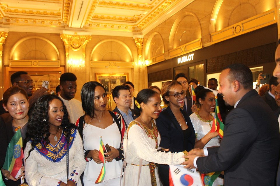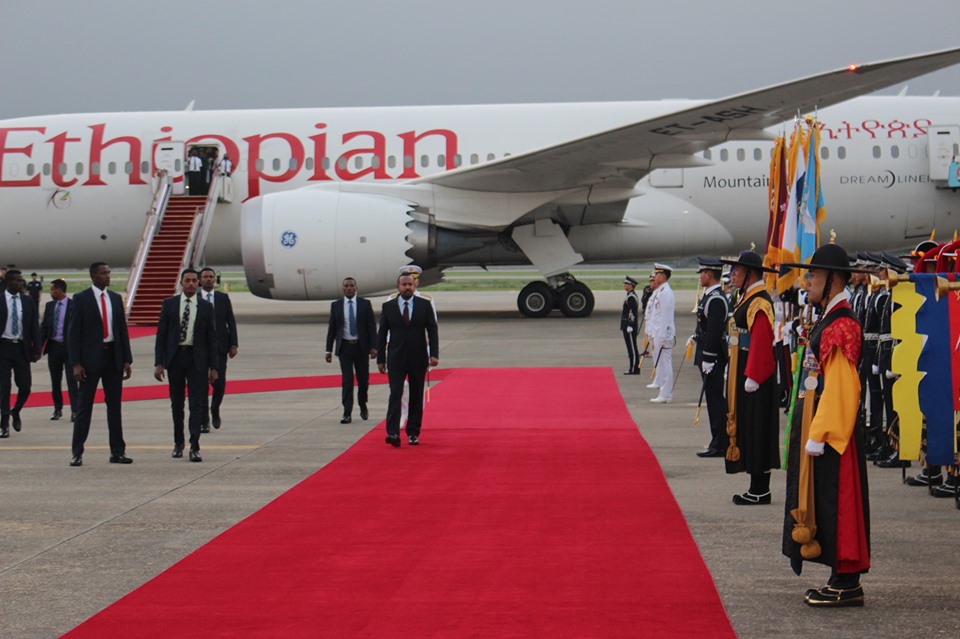 Prezdaantiin Kooriyaa Kibbaa Moon Jae-in bara 2017 filatamuun taayitaa eega qabatee booda,  Dr. Abiy hoggantoota biyyoota Afrikaa keessaa nama jalqabaa biyyattii daaw’ate tahuunis beekamee jira.