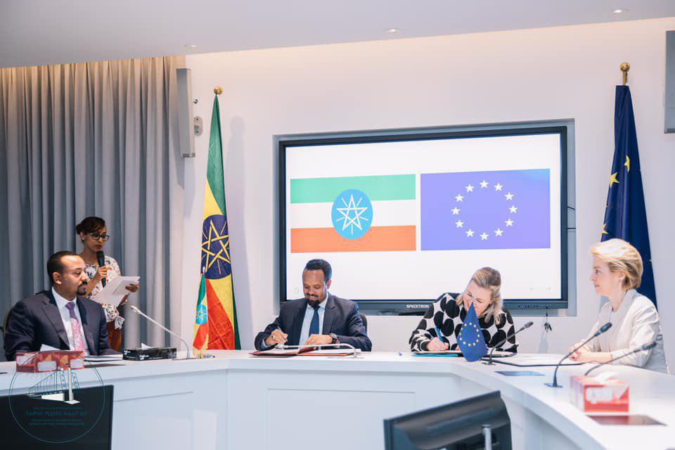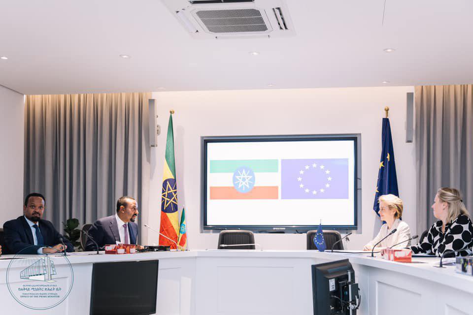 Prezdaantiin Komishiinii Gamtaa Awrooppaa Ursula Von der Leyen fi Daayirektarri tumsa idil addunyaa gamtichaa Ms. Jutta Urpilainen daaw’annaa hojiitiif har’a ganama Ityoophiyaa kan seenan yoo tahu, muummicha ministeeraa Dr. Abiy Ahmad dabalatee qondaaltota mootummaa kanneen biroo waliin mari’atanii jiru.