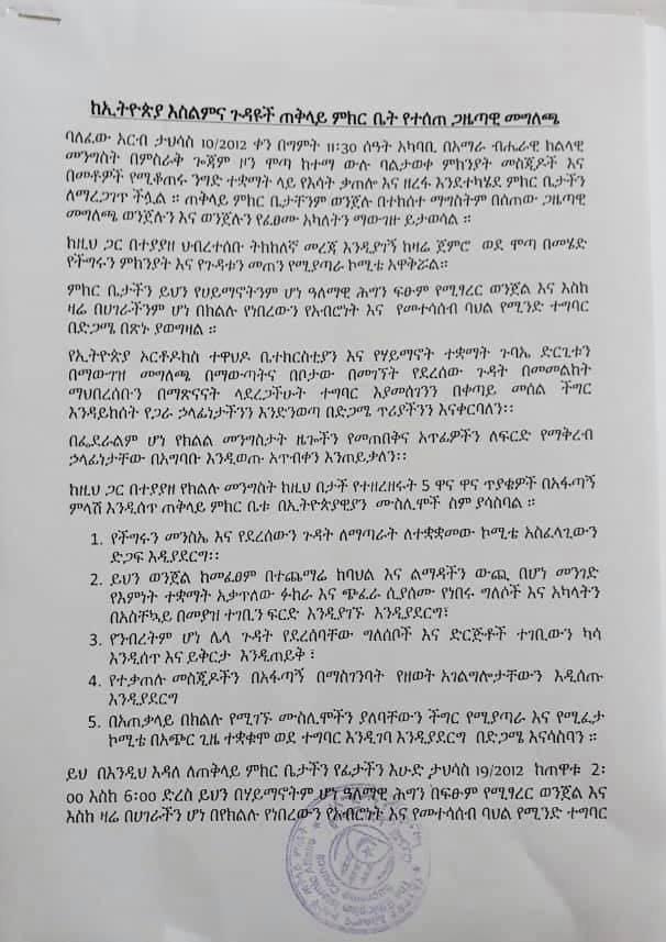 Gama biraatiin ammoo Majliisni Federaalaa ibsa ganama har’aa kenneen, jila gara magaalaa Mooxaatti ergameef mootummaan naannichaa deeggarsa barbaachisu hunda akka godhuuf gaafatee ture. Dabalatanis haleellaa fi dararaa Naannoo Amaaraa keessatti hawaasa muslimaa irratti raawwatamaa jiru balaalefachuuf, akka biyyaalessaatti Alhada dhuftu magaalaa Finfinnee keessatti mormiin guddaan kan geggeeffamu tahuunis beekamee jira.