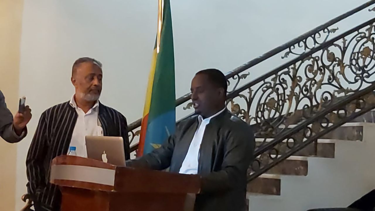Doohaatti hoggantuun Qonsilaa Itoophiyaa Addee Saamiyaa Zakariyyaa fi Itti aanaan hogganaa Obbo Sayid Fayisal, hawaasa waliin mari’atuun gaafilee hawaasa irraa dhiyaate dhaggeeffachuun mariisisan.