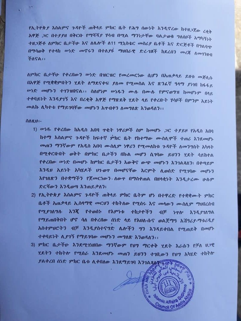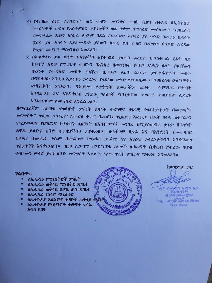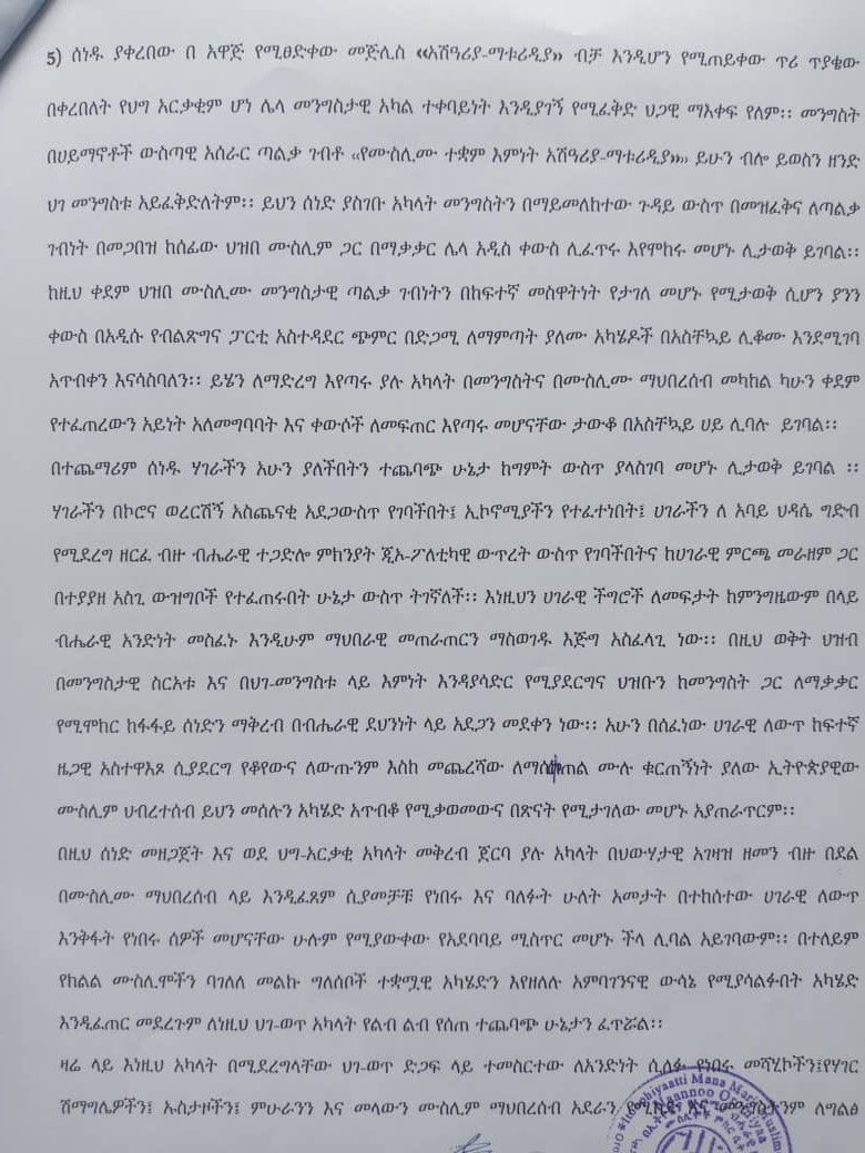 Itti ida’uunis Majlisoonni lamaan, Sanadni dhiyaate kan Muslimoota garee gareen adda qoqqooduu fi tokkummaa Muslimaa diiguuf qophaa’e tahuu ibsan.
