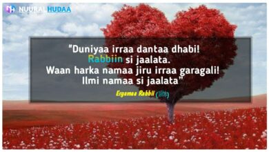 Ergamaan Rabbiis (SAW) akki jedhan “nama amala badaa irraa of tikse Rabbiin isa tiksa. Nama kadhaa irraa of duroomse Rabbiinis isa duroomsa. Nama obsa of leenjise Rabbiin obsa kennaaf.”