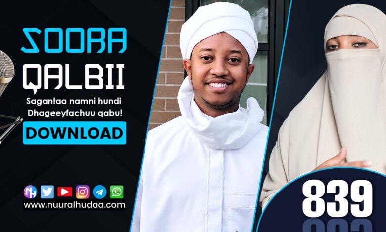 RAADIYOO NUURALHUDAA Soora Qalbii Muslimaa ✪✪✪✪✪✪✪✪✪✪✪✪✪ SOORA QALBII Sagantaa 839ffaa December 26, 2023 ✪✪✪✪✪✪✪✪✪✪✪✪✪ Dhaddacha Jaalalaa 196 Tafakkur Tana Quba Qabduu