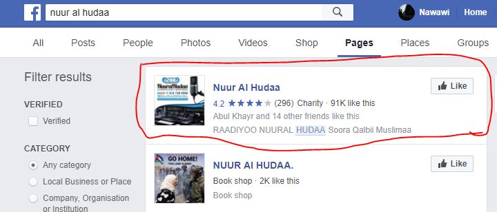 1ffaa. eega Account Facebook banattee booda, bakka Search jedhutti Nuur Al Hudaa jettee katabda. achi booda peejii Facebook kan maqaa Nuuralhudaatiin qaban hunda siif fida.